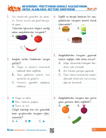 3. H Meyve ve sebze 6. Aşağıdakilerden hangisini kışın yerine