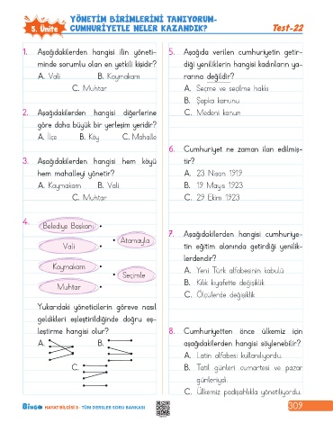 5. Ünite CUMHURIYETLE NELER KAZANDIK? Test-22