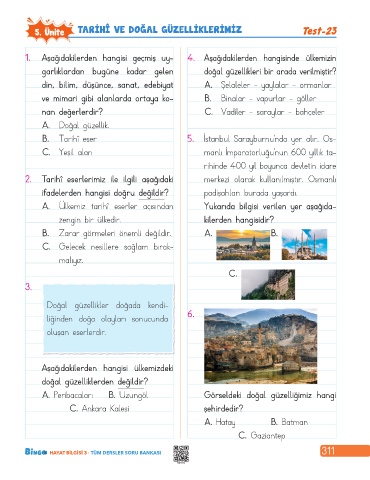 5. Ünite TARIHÎ VE DOĞAL GÜZELLIKLERIMIZ Test-23