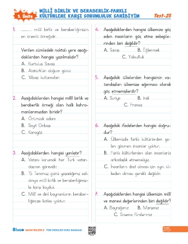 5. Ünite KÜLTÜRLERE KARŞI SORUMLULUK SAHIBIYIM Test-25