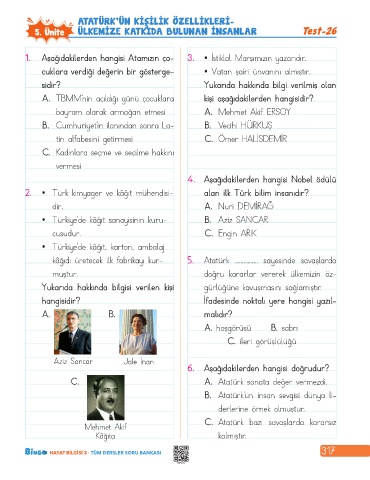 5. Ünite ÜLKEMIZE KATKIDA BULUNAN INSANLAR Test -26