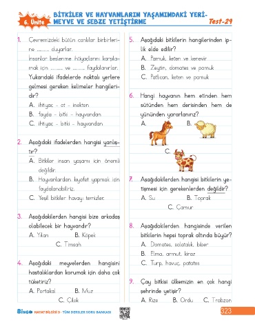 6. Ünite MEYVE VE SEBZE YETIŞTIRME Test-29
