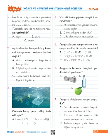 B. Çöpleri ayrıştırmadan çöp kutula- 6. Aşağıda verilenlerden hangisinin geri
