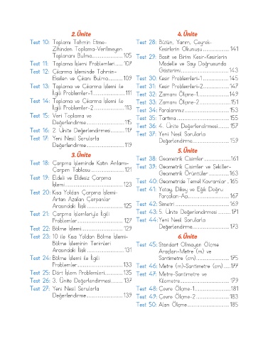Test 21: Çarpma İşlemleriyle İlgili Test 43: 5. Ünite Değerlendirmesi ...........171