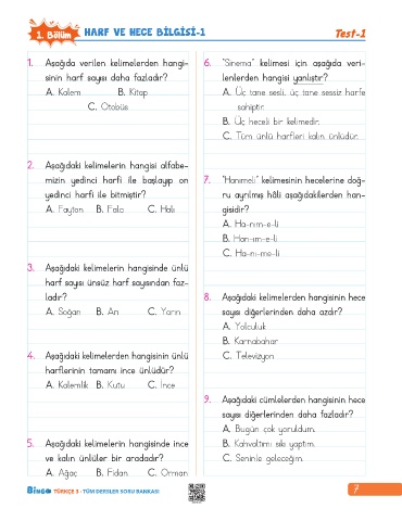 1. Bölüm HARF VE HECE BİLGİSİ-1 Test-1