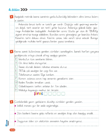 4 Kesme işareti kullanılması gereken cümleleri işaretleyelim. İşaretli harfleri yanyana
