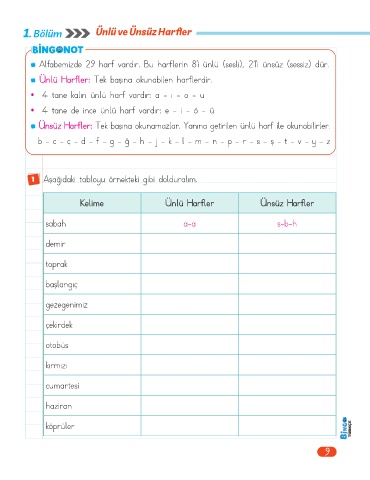 1. Bölüm Ünlü ve Ünsüz Harfler