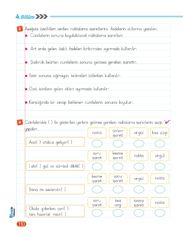 4 Cümlelerdeki ( ) ile gösterilen yerlere gelmesi gereken noktalama işaretlerini seçip “✔”