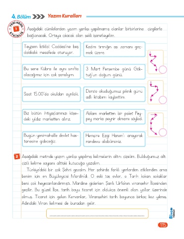 2 Aşağıdaki metinde yazım yanlışı yapılmış kelimelerin altını çizelim. Bulduğumuz altı