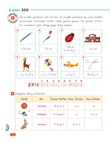 2 Üst sıradaki görsellerin ünlü harfleri, alt sıradaki görsellerin ise ünsüz harfleri