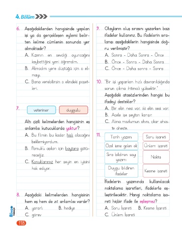 6. Aşağıdakilerden hangisinde yapılan 9. Olayların oluş sırasını yazarken bazı