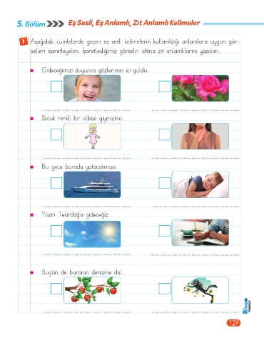 1 Aşağıdaki cümlelerde geçen eş sesli kelimelerin kullanıldığı anlamlara uygun gör-
