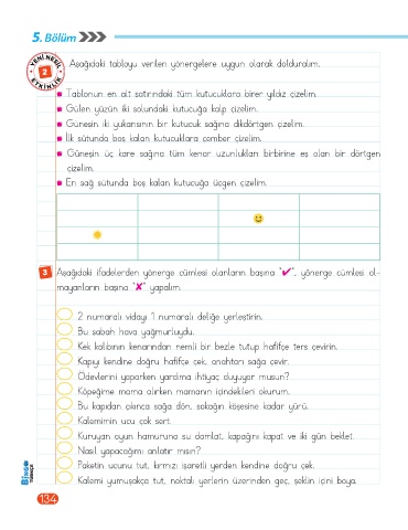 3  Aşağıdaki ifadelerden yönerge cümlesi olanların başına “✔”, yönerge cümlesi ol-