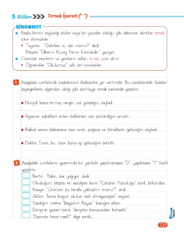 5. Bölüm                Tırnak İşareti (“  ”)