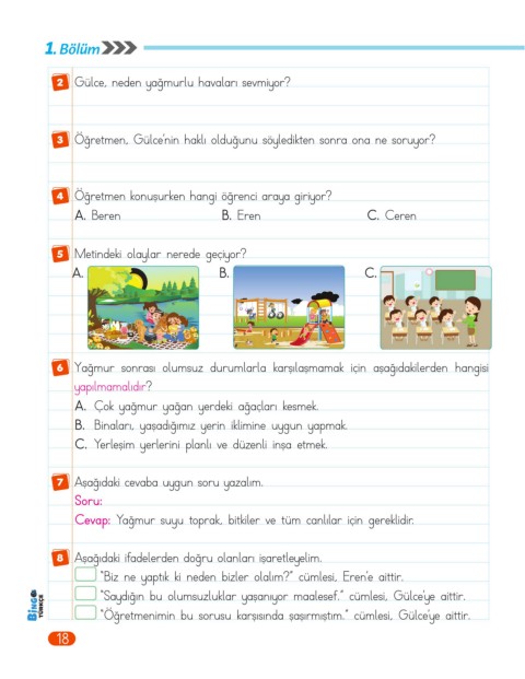 7 Aşağıdaki cevaba uygun soru yazalım.