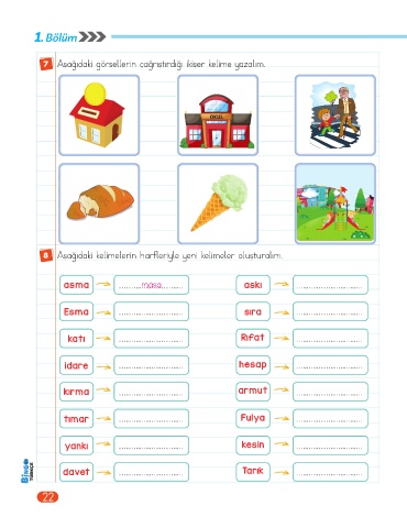 8 Aşağıdaki kelimelerin harfleriyle yeni kelimeler oluşturalım.