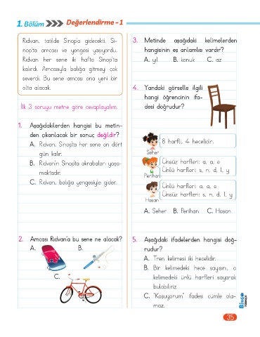 2. Amcası Rıdvan’a bu sene ne alacak? 5. Aşağıdaki ifadelerden hangisi doğ-