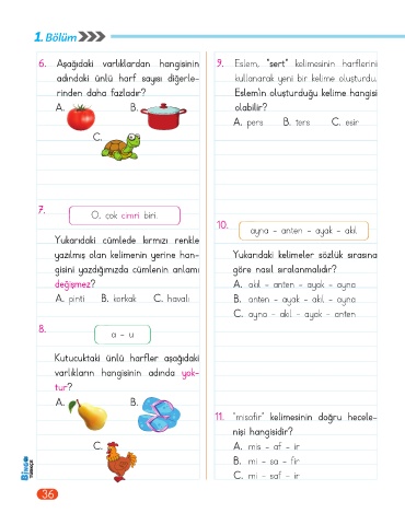 6. Aşağıdaki varlıklardan hangisinin 9. Eslem, “sert” kelimesinin harflerini