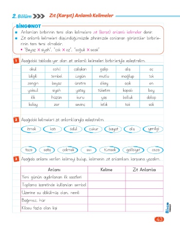 2. Bölüm Zı t (K ar şı t) A nlamlı K elimele r