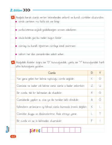 3 Aşağıda karışık olarak verilen kelimelerden anlamlı ve kurallı cümleler oluşturalım.