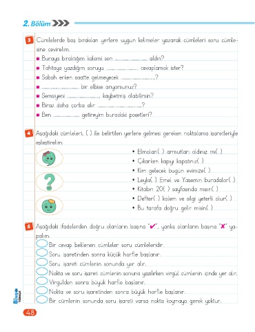 3 Cümlelerde boş bırakılan yerlere uygun kelimeler yazarak cümleleri soru cümle-