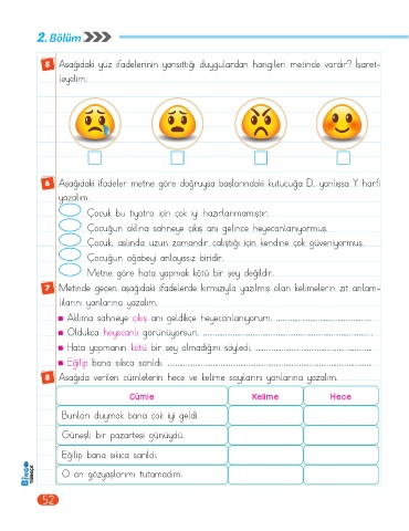 5 Aşağıdaki yüz ifadelerinin yansıttığı duygulardan hangileri metinde vardır? İşaret-