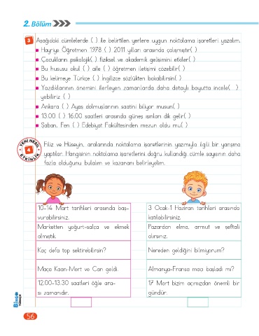 3 Aşağıdaki cümlelerde ( ) ile belirtilen yerlere uygun noktalama işaretleri yazalım.