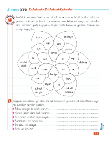 Aşağıdaki mandala üzerinde eş anlamlı, zıt anlamlı ve büyük harfle başlaması