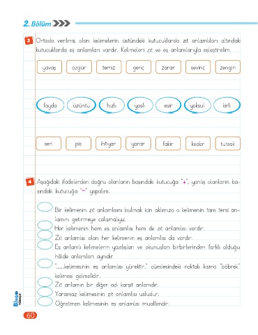 3 Ortada verilmiş olan kelimelerin üstündeki kutucuklarda zıt anlamlıları altındaki