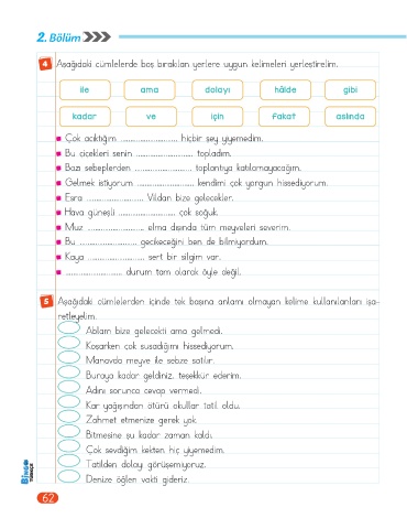 4 Aşağıdaki cümlelerde boş bırakılan yerlere uygun kelimeleri yerleştirelim.