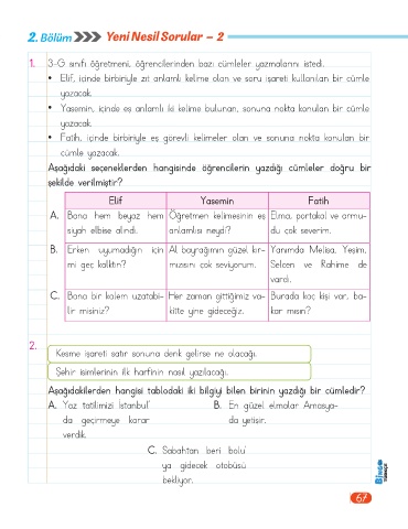 1. 3-G sınıfı öğretmeni, öğrencilerinden bazı cümleler yazmalarını istedi.