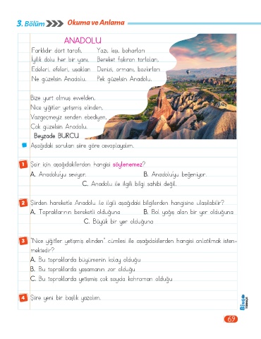 2 Şiirden hareketle Anadolu ile ilgili aşağıdaki bilgilerden hangisine ulaşılabilir?