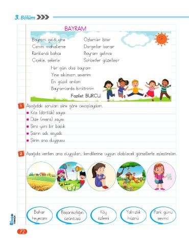 1 Aşağıdaki soruları şiire göre cevaplayalım.