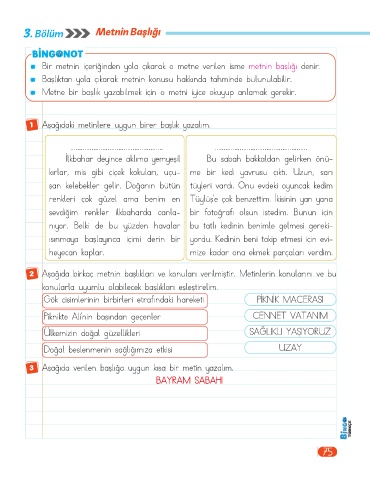 1 Aşağıdaki metinlere uygun birer başlık yazalım.