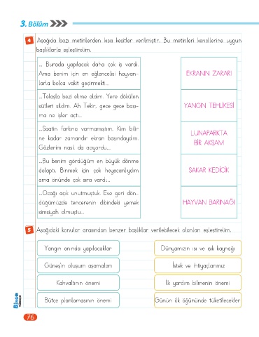 5 Aşağıdaki konular arasından benzer başlıklar verilebilecek olanları eşleştirelim.