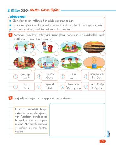 1 Aşağıdaki görsellerin altlarındaki kutucuklara, görsellerin ait olabilecekleri metin