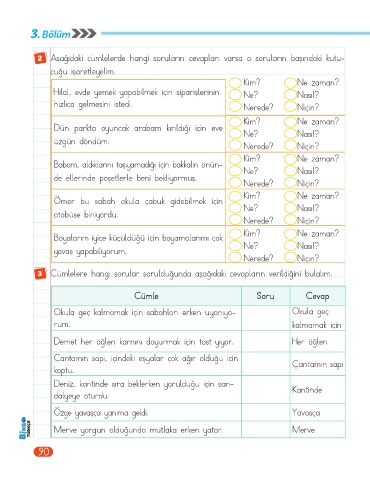 2 Aşağıdaki cümlelerde hangi soruların cevapları varsa o soruların başındaki kutu-