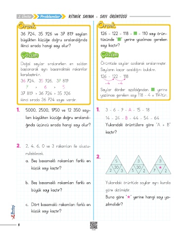 1. Ünite Problemler RİTMİK SAYMA - SAYI ÖRÜNTÜSÜ