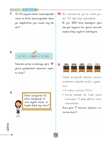 7. 45 012 sayısının binler basamağındaki 10.Bir matbaada her gün bir önceki gün-