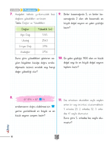 67 874 > 67 74 11. Beş arkadaşın okudukları sayfa sayıları