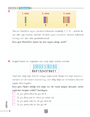 4. Aşağıda Hazal’ın bir mağazadan satın aldığı eteğin barkodu verilmiştir.