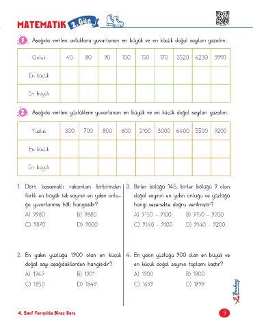 2 Aşağıda verilen yüzlüklere yuvarlanan en büyük ve en küçük doğal sayıları yazalım.