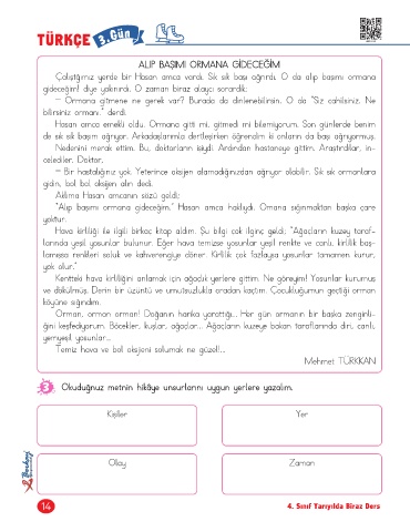 3 Okuduğnuz metnin hikâye unsurlarını uygun yerlere yazalım.