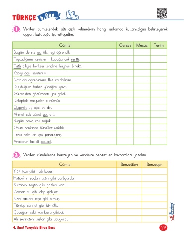 1 Verilen cümlelerdeki altı çizili kelimelerin hangi anlamda kullanıldığını belirleyerek