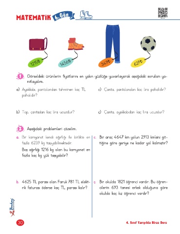b) Top, çantadan kaç lira ucuzdur? ç) Çanta, ayakkabıdan kaç lira ucuzdur?