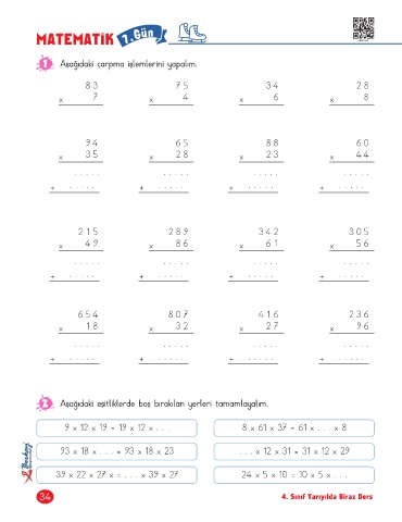 1 Aşağıdaki çarpma işlemlerini yapalım.