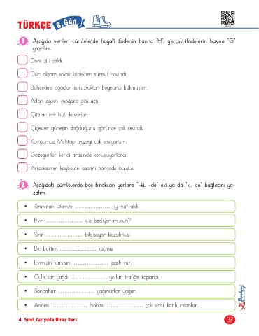 1 Aşağıda verilen cümlelerde hayalî ifadenin başına “H”, gerçek ifadelerin başına “G”