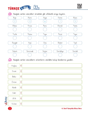 3 Aşağıda verilen sözcükleri örnekteki gibi alfabetik sıraya koyalım.