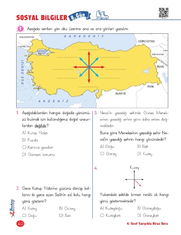 1 Aşağıda verilen yön oku üzerine ana ve ara yönleri yazalım.