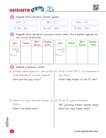 2 Aşağıdaki bölme işlemlerinin sonuçlarını tahmin edelim. Sonra işlemleri yaparak tah-